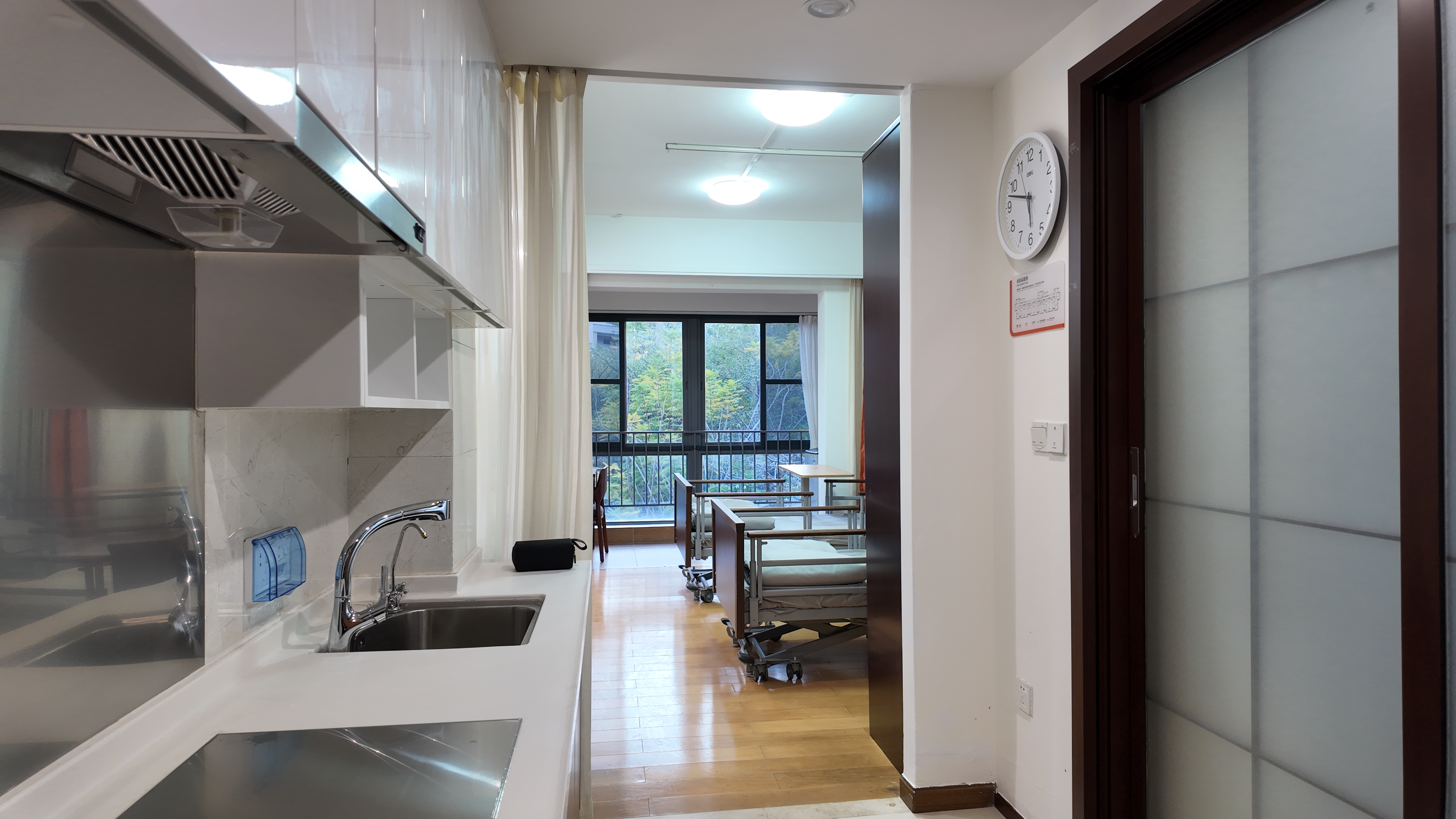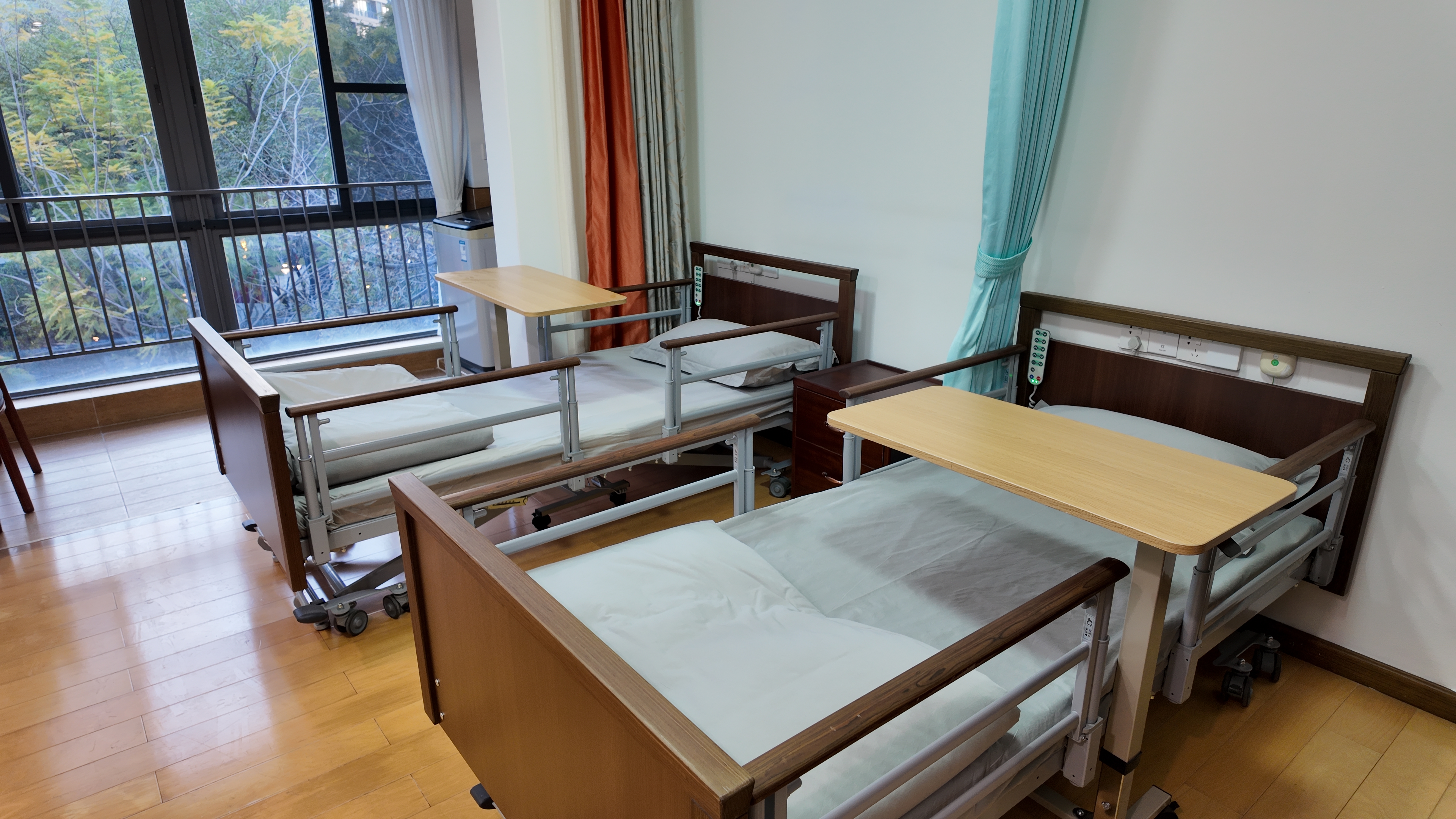 有單人房和雙人房兩種選擇,每間房都有陽台,確保空氣流通和光線充足。每一個細節都是經過適老化設計,護理床是符合國際安全標準的電動床,每間房都安裝了「平安鐘」。